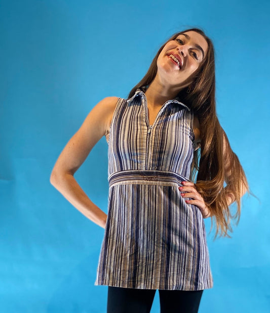 Vintage 1980s Size L Denim Hooded Dress in Light Wash.