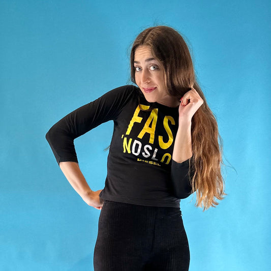 Black Diesel Fast No Slow 3/4 Length Sleeves Graphic Top XS S