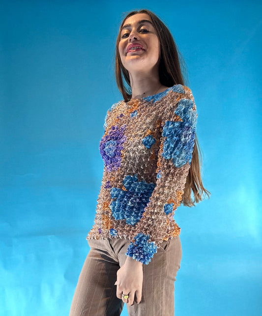 Y2K Vintage Floral Printed Long Sleeve Popcorn Top.