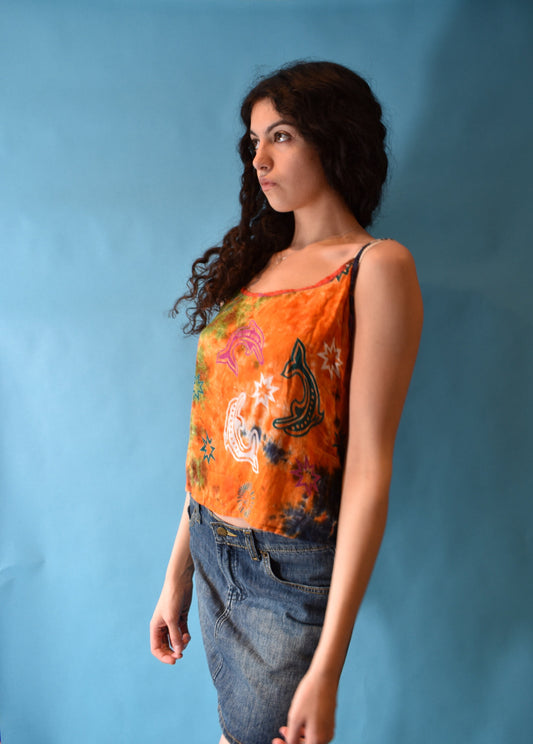 Vintage Y2K 1990s Size M/L Tie Dye Cami Top with Dolphins in Multi Colour.