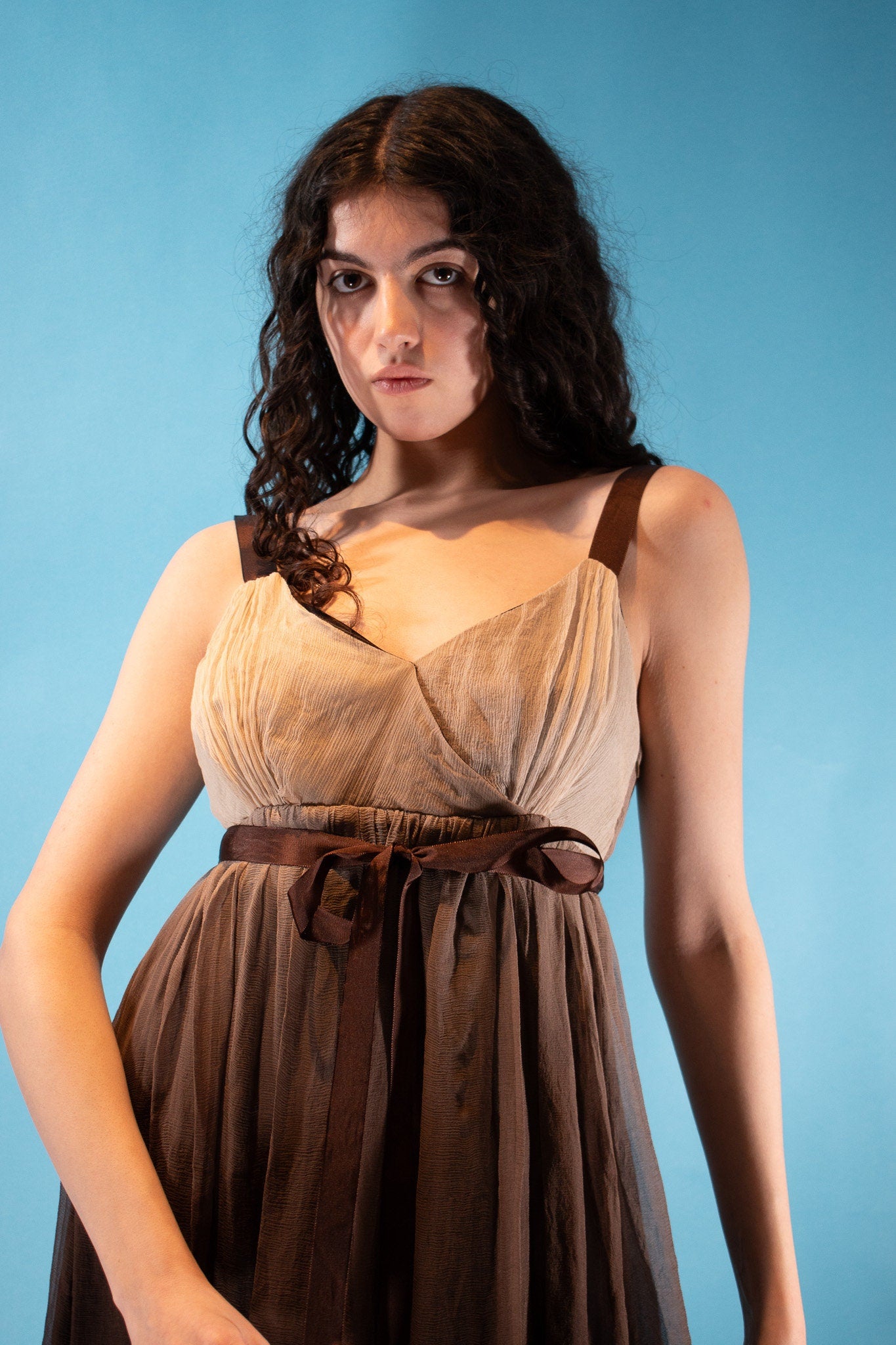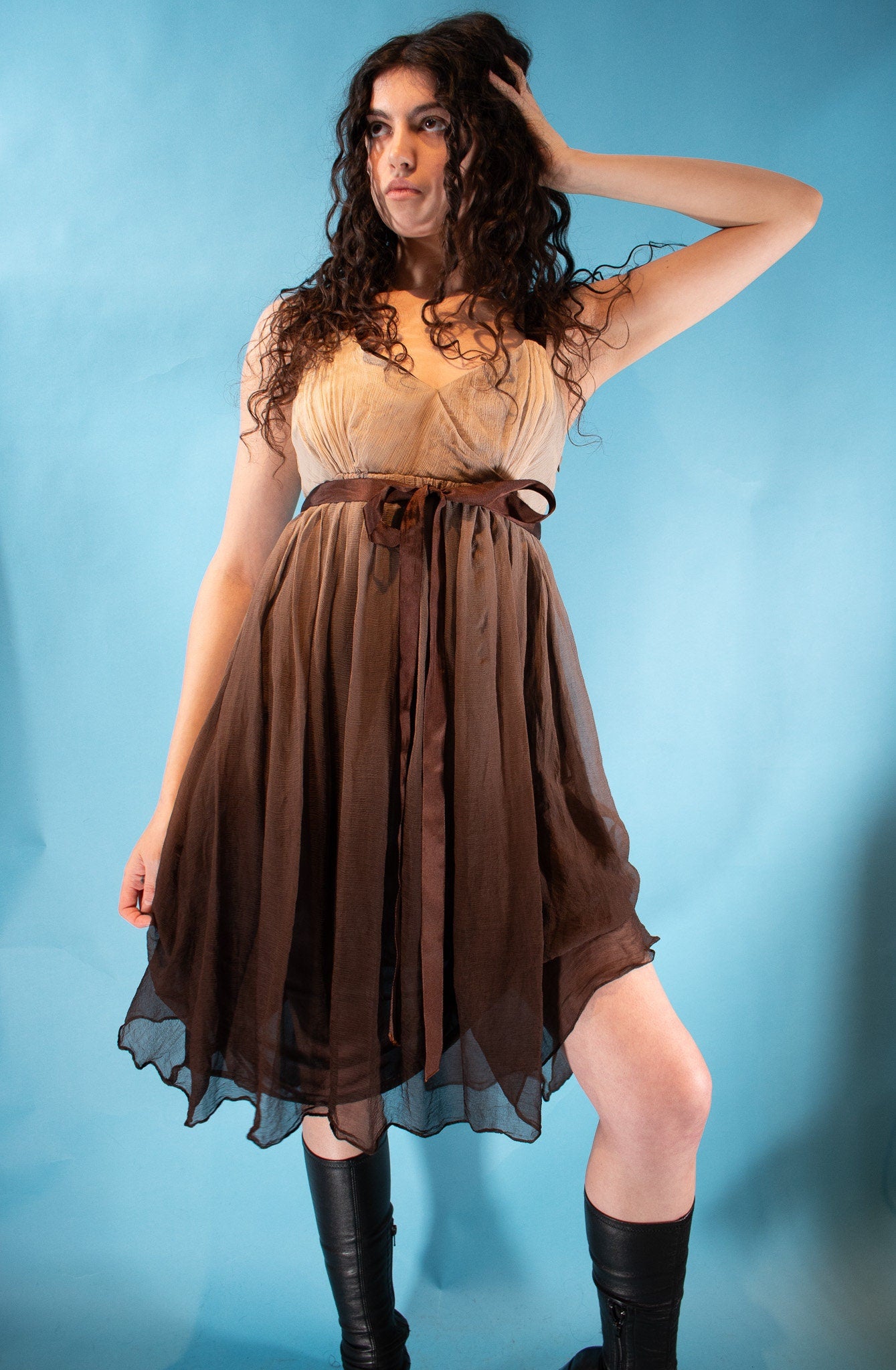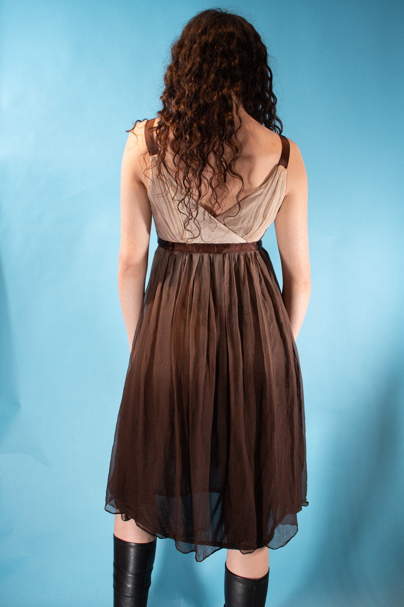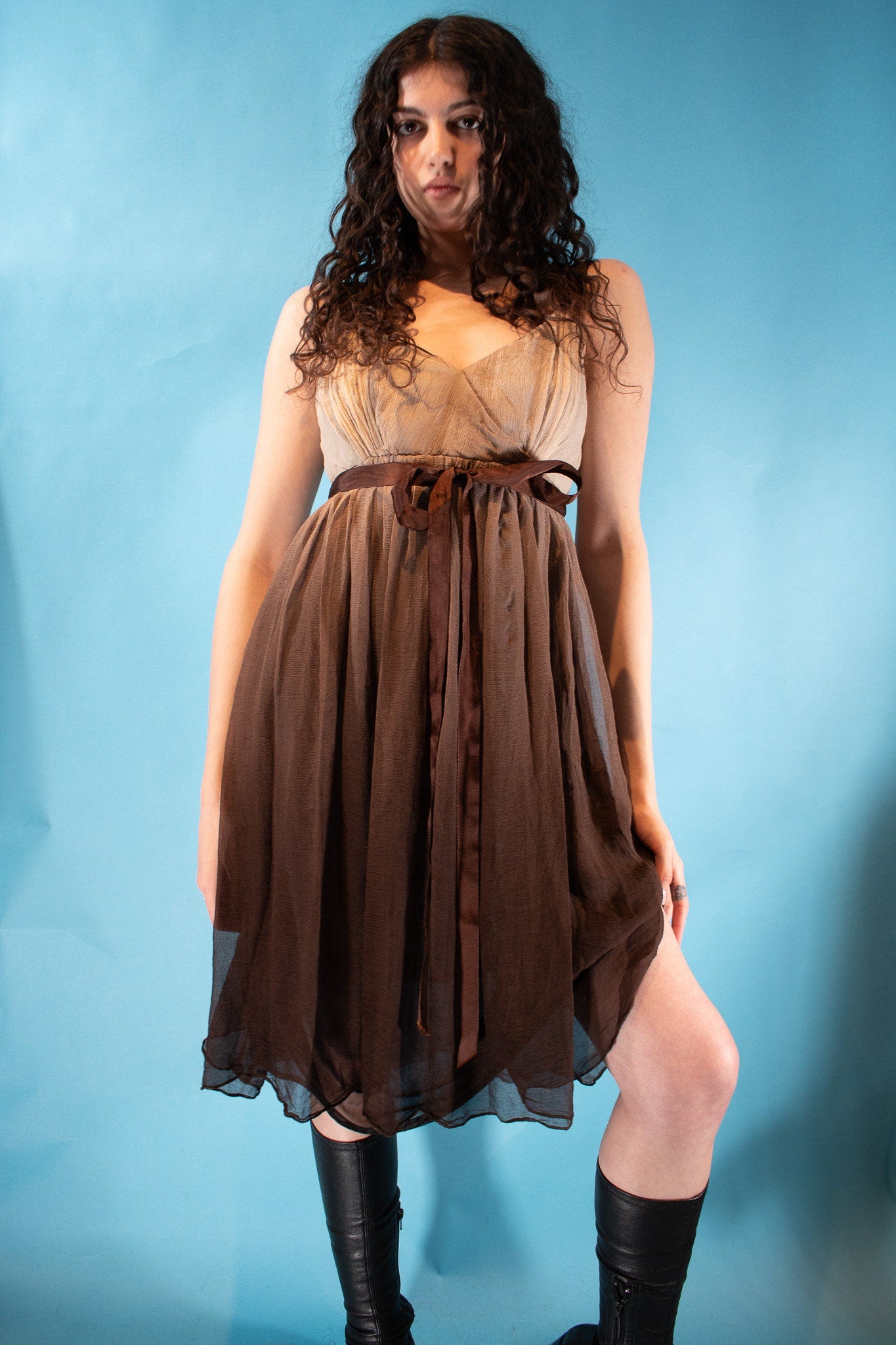 Vintage 1990s Y2K Size S Waterfall V Neck Wrap Dress in Brown Ombre.