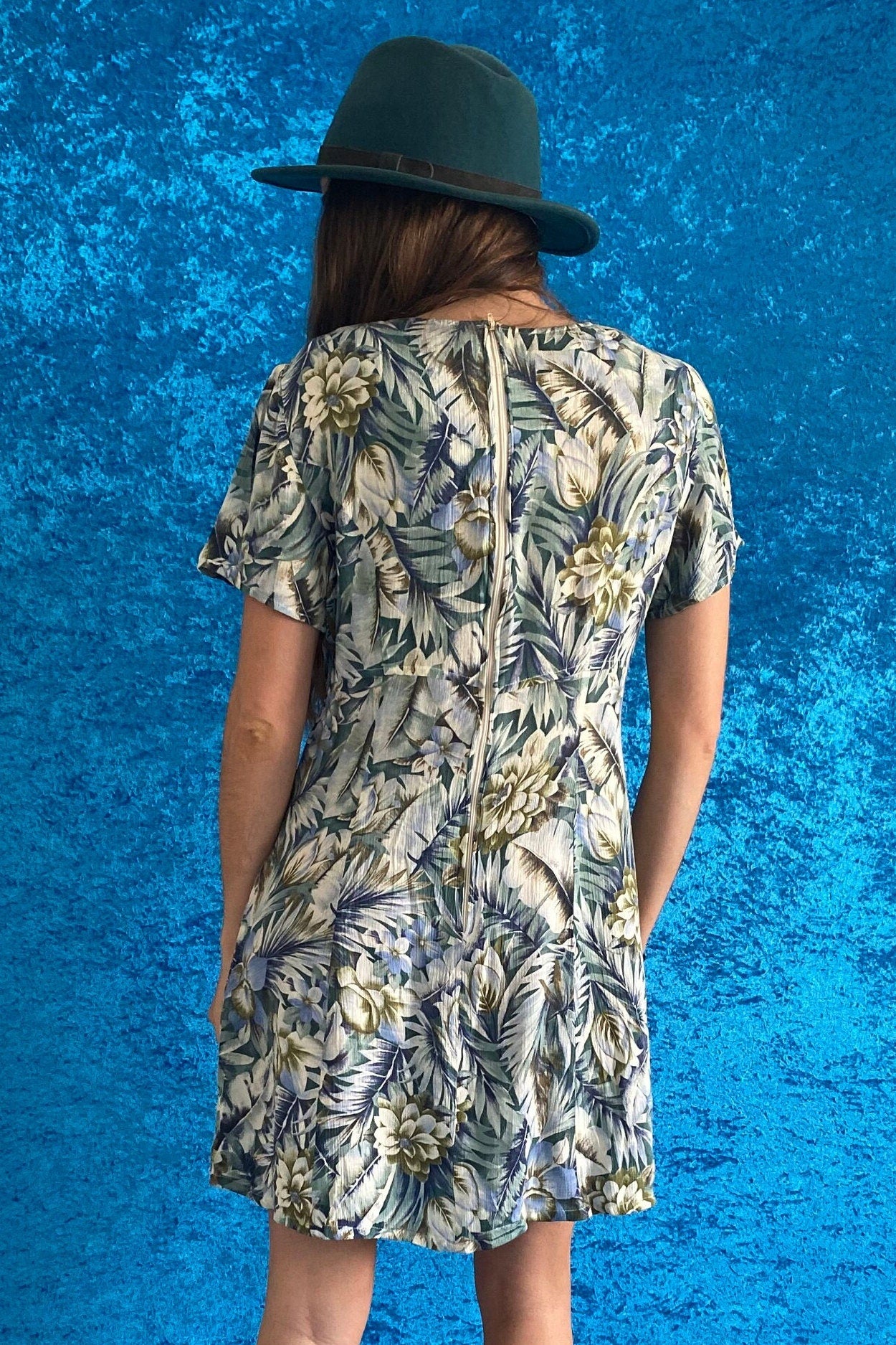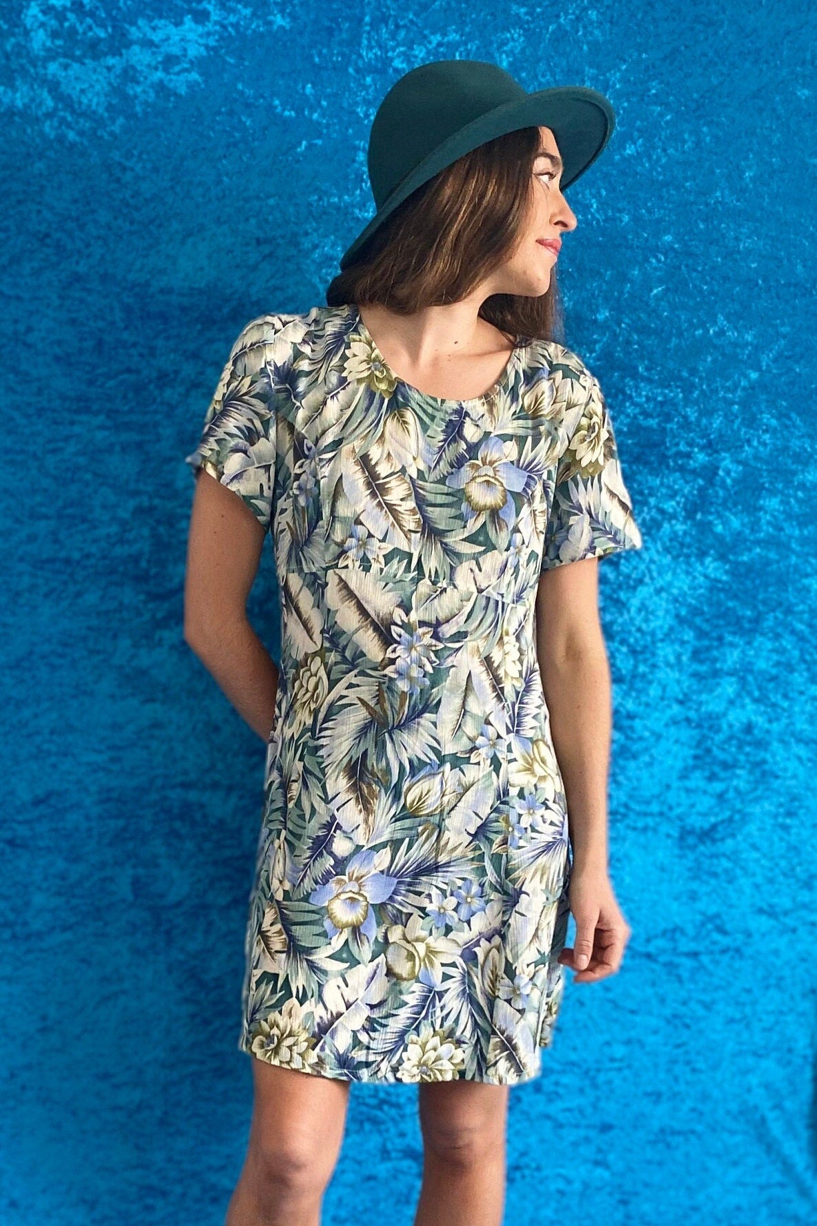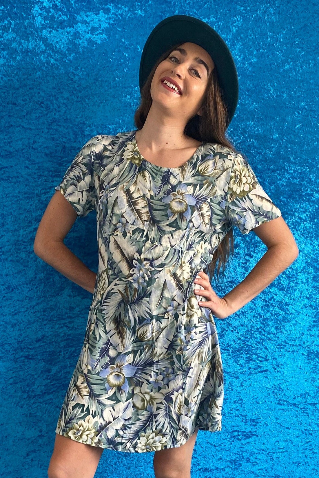 Vintage Boho 90s Palm Leaf Sun Dress.
