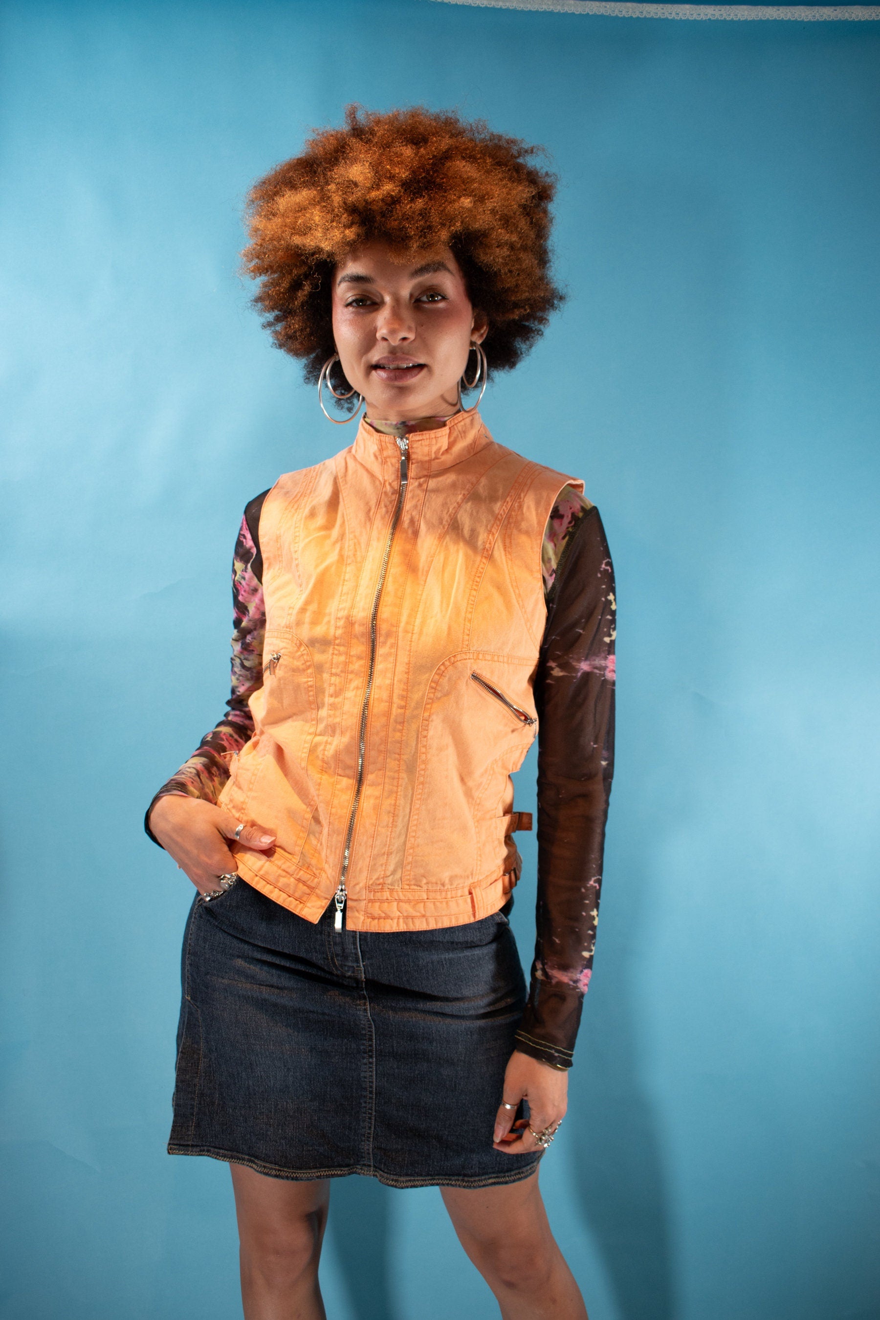 Vintage Y2K M Cargo Style Waistcoat in Orange.
