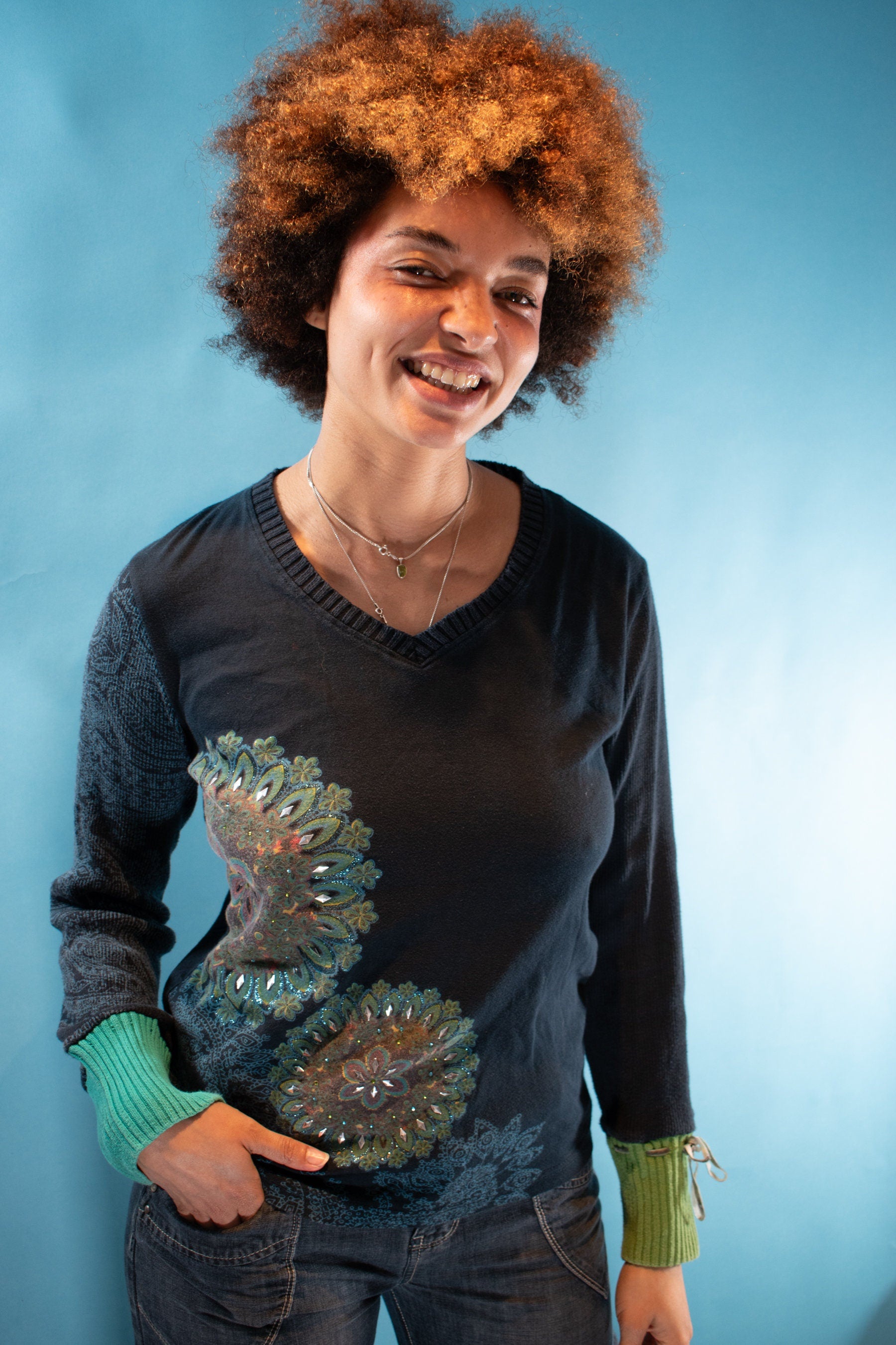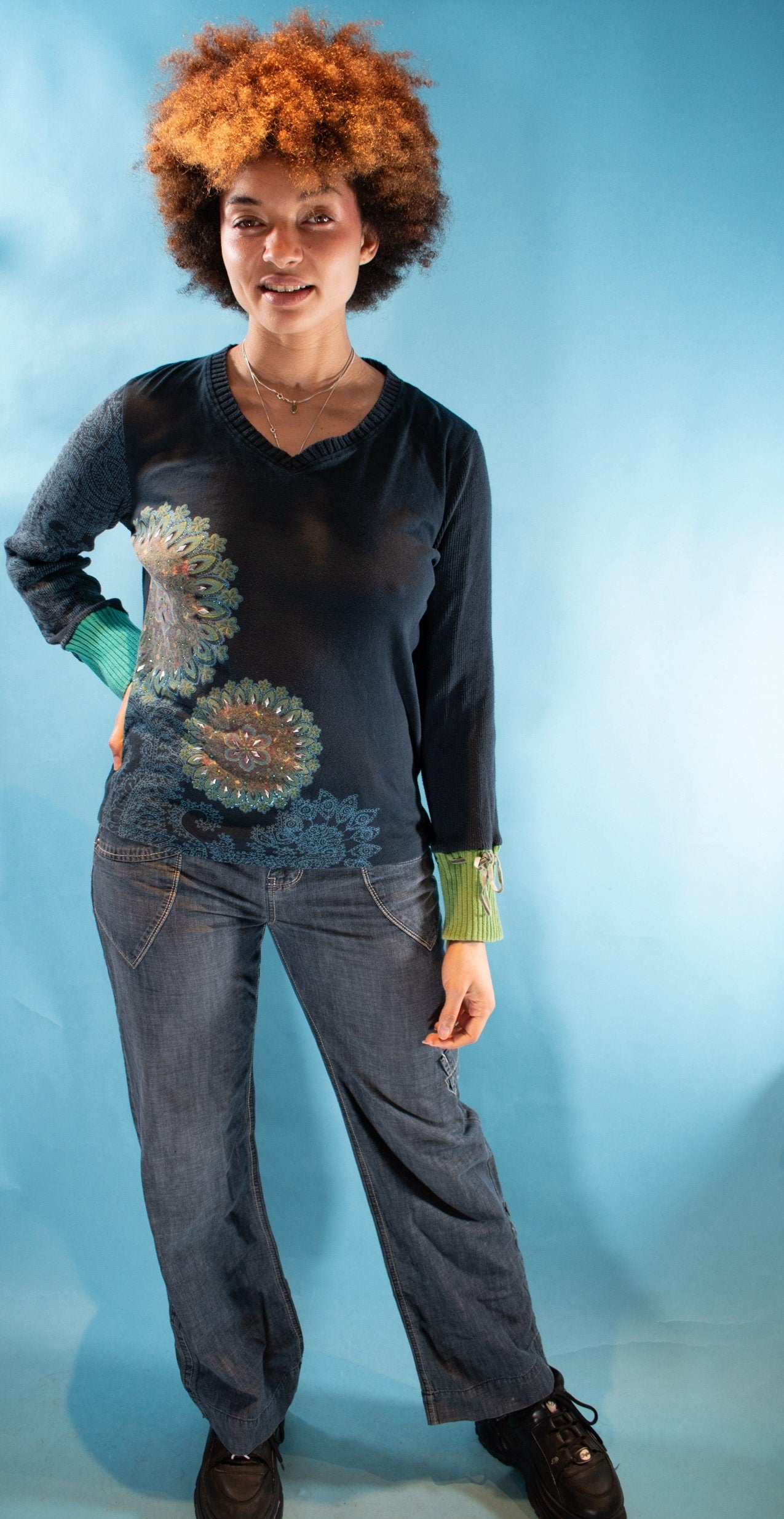 Vintage Y2K M/L Desigual Long Sleeve Jersey Top in Navy.